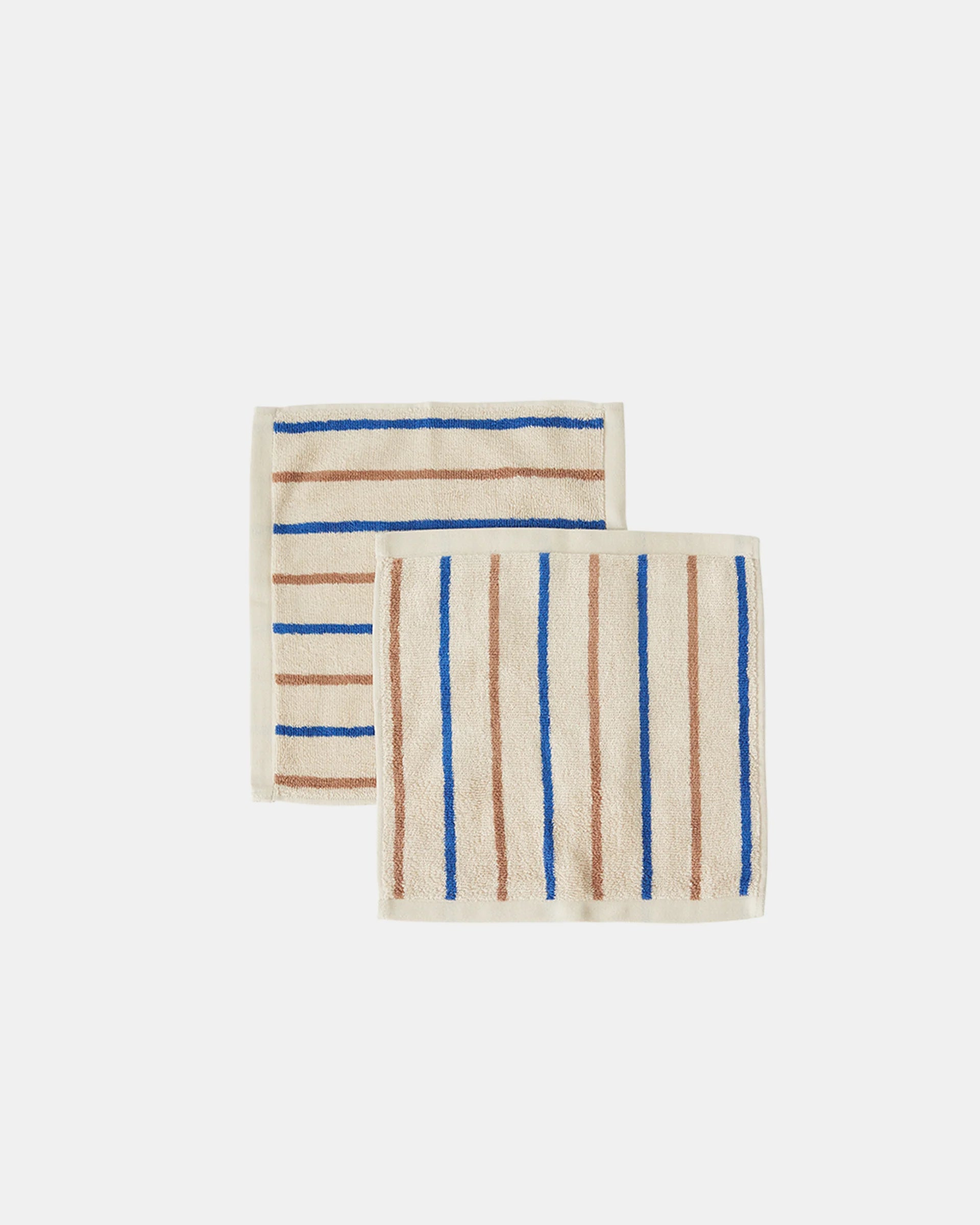 Verschönern Sie Ihr Badezimmer mit den eleganten Raita-Waschlappen von OYOY. Das Set besteht aus zwei Teilen mit einem frischen Streifenmuster, das vom finnischen Wort für Streifen, Raita, inspiriert ist.