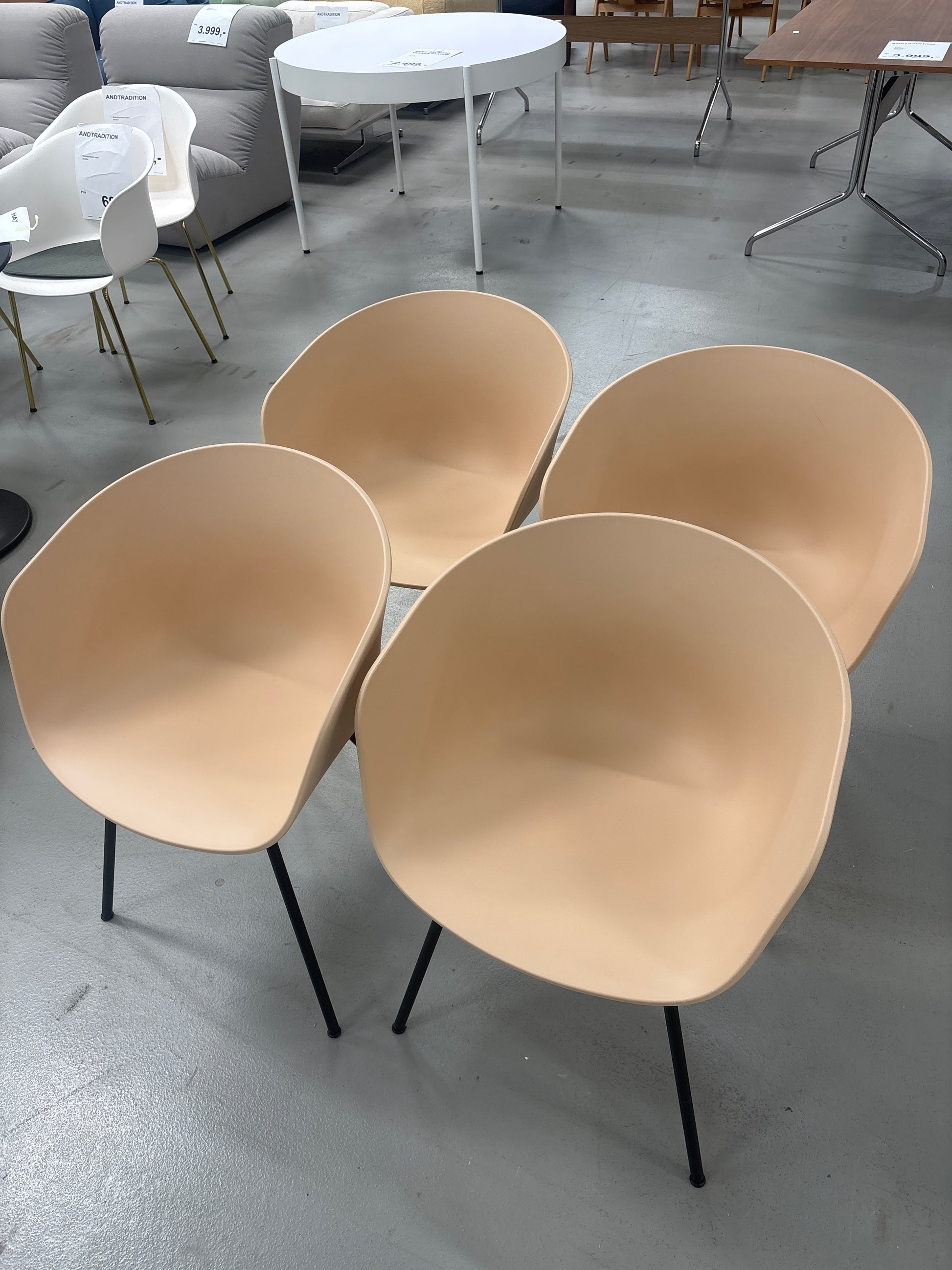 HAY AAC226 Spisestol 4 stk. – med sort pulverlakeret stålbase, standardglidere og et sæde i farven Pale Peach