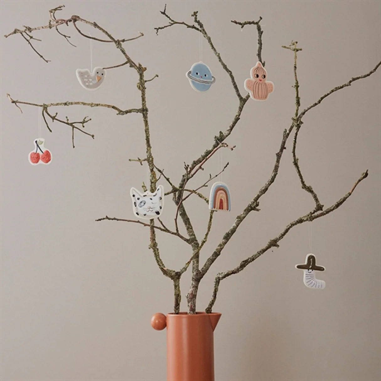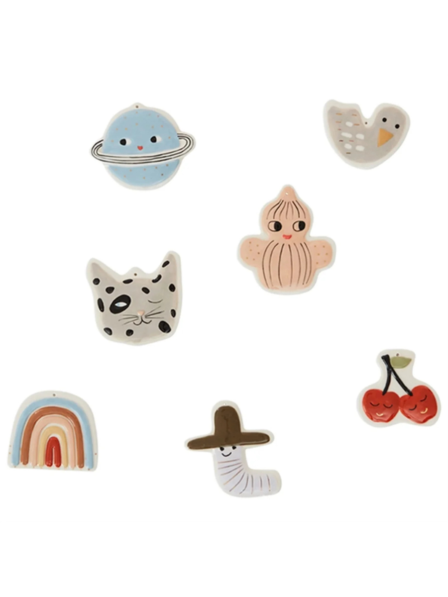 Smukke vedhæng til hjemmet i skønne farver. Pakken indeholder 7 charmerende motiver, hver med sin egen unikke stil. De er monteret med en diskret, gennemsigtig tråd, så de let kan hænges op. Perfekte til at skabe hygge og stemning på børneværelset – men de gør sig også flot i hjemmets øvrige rum.